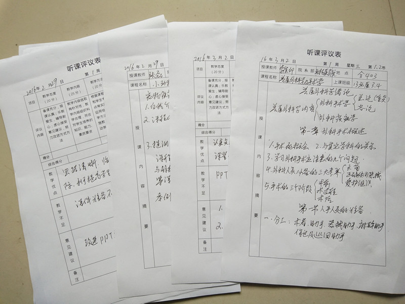 之后,各检查组分别反馈了交叉听课的情况。我院各教研室承担的课程授课情况整体良好,但仍存在部分问题,主要包括:部分教师对课堂纪律要求不够严格;多数学生做笔记的主动性比较差,但部分教师没有特别提出学生记笔记的要求;部分年轻教师授课内容结合临床生产较少,没有充分吃透教学内容,重点不突出,课堂气氛比较平淡;部分老教师授课课件质量有待提高,个别教师课件中文字过多等。