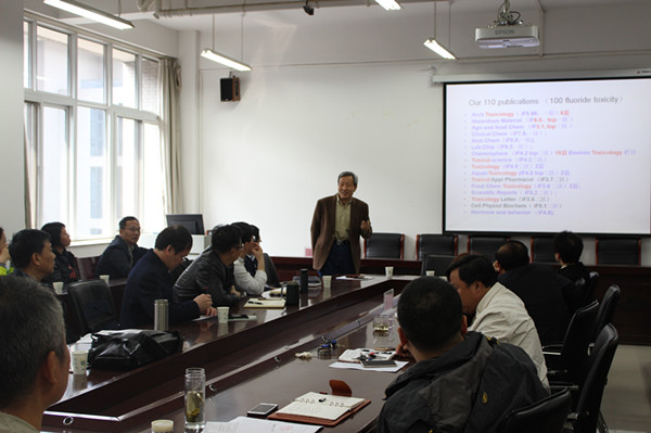 王教授从环境氟中毒的历史、现状、危害及多年从事氟中毒研究的科研思路、取得的研究成果和国家自科基金项目申报等方面为大家作了一场精彩的学术报告,大家深感受益匪浅,并为王教授严谨的学术态度和精益求精的学术精神深感敬佩。