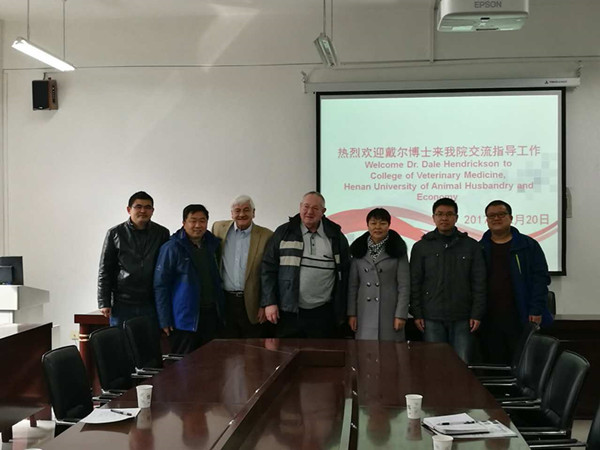 2017年2月20日,美国印第安纳州著名猪病专家戴尔博士莅临我院交流指导工作,并为我院师生做了一场《美国养猪业发展现状及规模化猪场猪病防制》的报告。参加交流的有校教务处边传周处长、动物医学院王春明书记、生物工程学院和我院的部分教师,以及14级动物医学专业的部分学生。边处长首先介绍了戴尔博士的基本情况,戴尔(Dale A. Hendrickson)博士是美国四星兽医服务公司的前董事长,普渡大学博士,在美国8个州具有行医资格,其开办的门诊在美国个人兽医诊所中规模最大,在猪病诊疗行业具有很高的影响力。