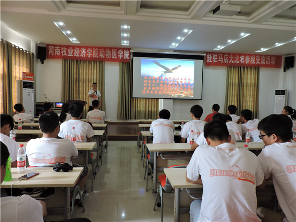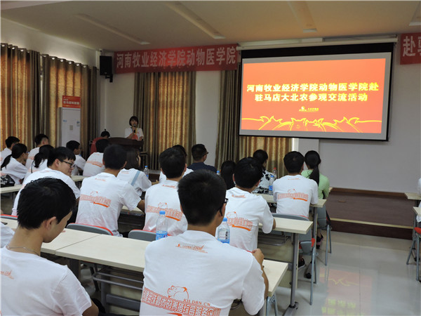 师生一行抵达科技园后,首先由大北农集团驻马店科技园基地总经理黄梦川致辞,他对我院师生的到来表示热烈的欢迎,表示此次活动意义非凡,并合影留念。