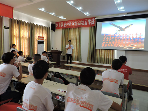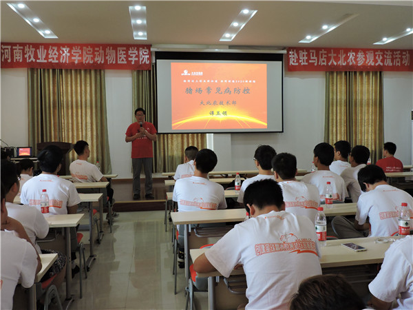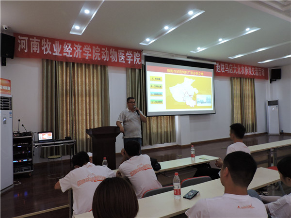 驻马店科技园基地技术服务总监谭玉领老师结合自身实际工作经验讲解了畜牧业发展趋势、现状、及猪场常见病防控,并提出养猪业人才奇缺的现状,鼓励学生加入农业,投身养猪业,用三部曲助推学子成功,赢得了学生的阵阵掌声!