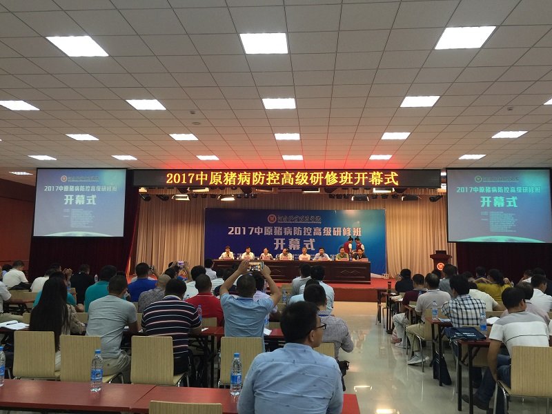 9月16日上午8:30,由学校主办,河南省猪病防控工程技术研究中心、动物医学院、海润资产经营有限公司承办的2017中原猪病防控高级研修班开幕式在我校龙子湖校区大学生活动中心报告厅隆重举行。学校副校长张卫宪、省畜牧局医政药政处处长周瑞兰、河南农大牧医工程学院王川庆教授、教务处处长边传周教授、猪病防控工程技术研究中心主任李文刚教授、海润资产经营有限公司总经理刘玉锋、科研处副处长胡华锋等领导出席开幕式。来自省内外养猪产业一线的技术、管理人员200余人参加了活动。开幕式由动物医学院党总支书记王春明主持。