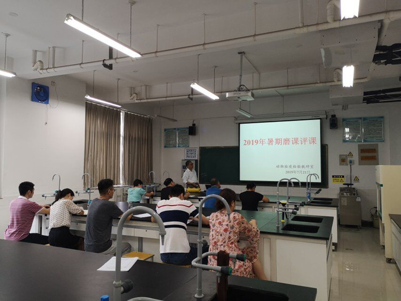 根据学校和学院的工作安排,为了进一步优化课堂教学、促进教育教学质量的提高,2019年7月21日上午,动物医学院动物检疫检验教研室在生工楼C405室开展了2019年暑期集中讲课评课活动。此次活动由曹素芳教授主持,全体教研室成员参加,马晓海老师和董望老师进行了讲课活动。