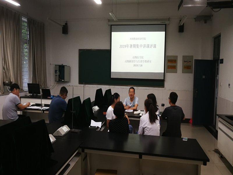根据学校和学院的工作计划,动物解剖与生理学教研于2019年7月18号在生工组团C106开展互听课和互相评课活动,参加听课和评课的老师有动物解剖生理学教研室老师:王军、张利卫、彭永帅、李月勤、杨树和张丽老师;兽医病理学教研室老师:张桂云和吴凤笋老师。通过磨课老师的讲课和其他老师的评课,使每位老师对自己所授课程的理解、ppt中存在的问题、讲课的方式和方法、对大纲的掌握和讲课过程中存在的问题等有了明确的认识,为提高授课水平奠定了基础。
