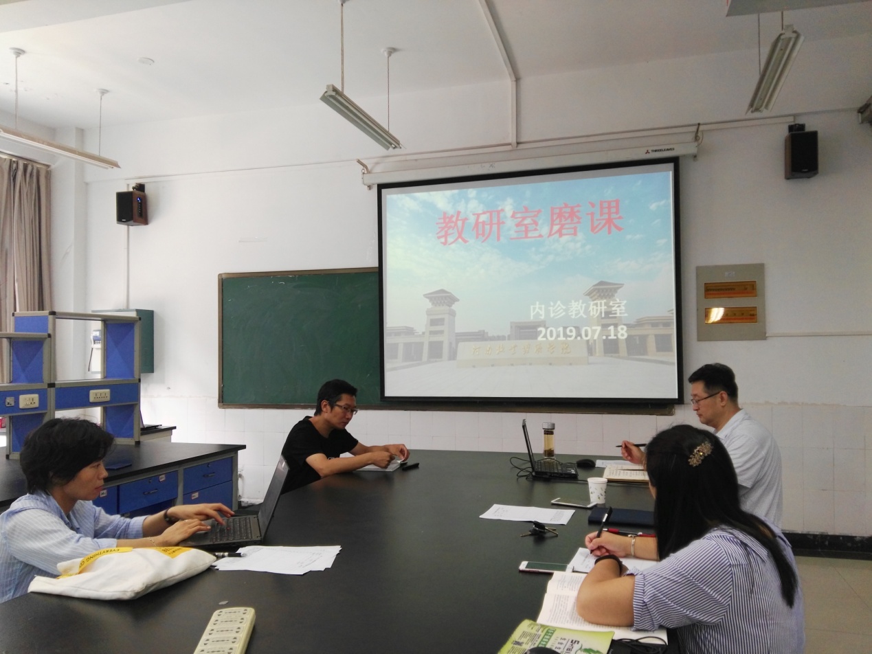 7月18日內诊教研室在实验室C207开展了磨课活动,参加人员有石冬梅、靳双星、沈永恕、张磊、张华、任晓丽、李新锋等,听取了张磊、张华、任晓丽三位教师的讲课,教研室其他老师分别从备课情况、上课内容、仪表仪态、讲课艺术等方面给与点评。本次磨课提高了教师的讲课水平,提升了教育教学质量,为明年本科评估奠定了基础。