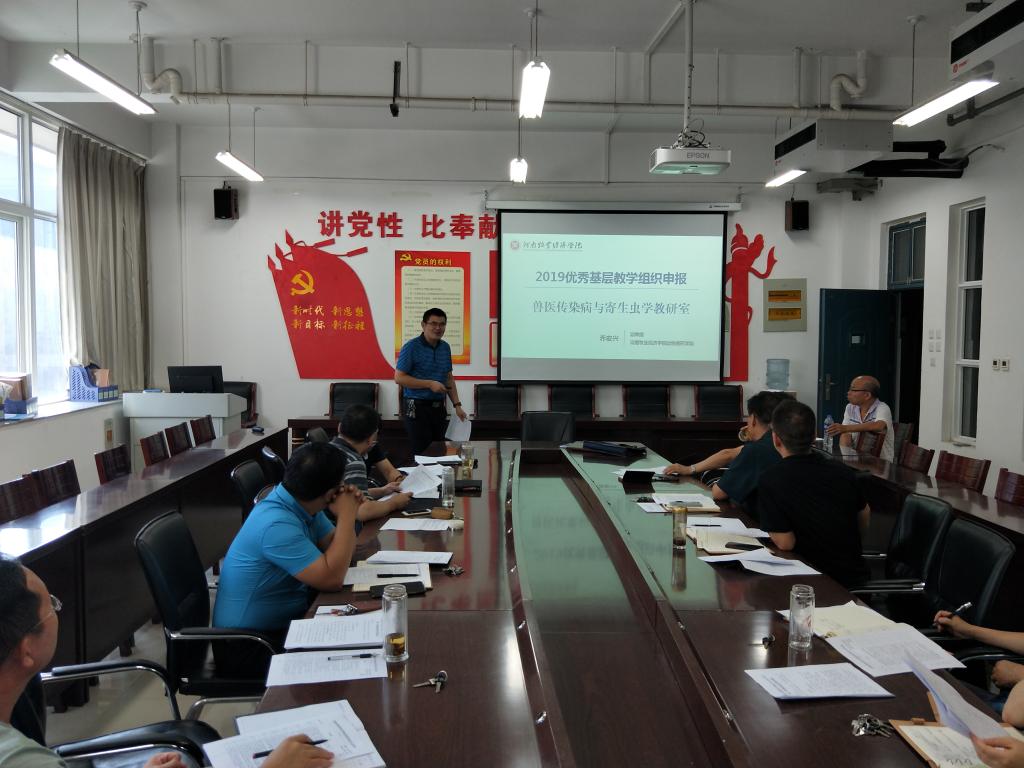 宋院长首先领学了河南省高等学校优秀教学基层组织认定标准,要求全体教研室必须全部达到合格标准,争创优秀教学基层组织。接着,经教研室主任汇报、民主测评等程序,从提出申请的三个教研室中推荐兽医传染病与寄生虫病学教研室代表我院参加学校2019年度河南省优秀基层教学组织评选。最后,宋院长对我院期初教学检查工作进行了部署。