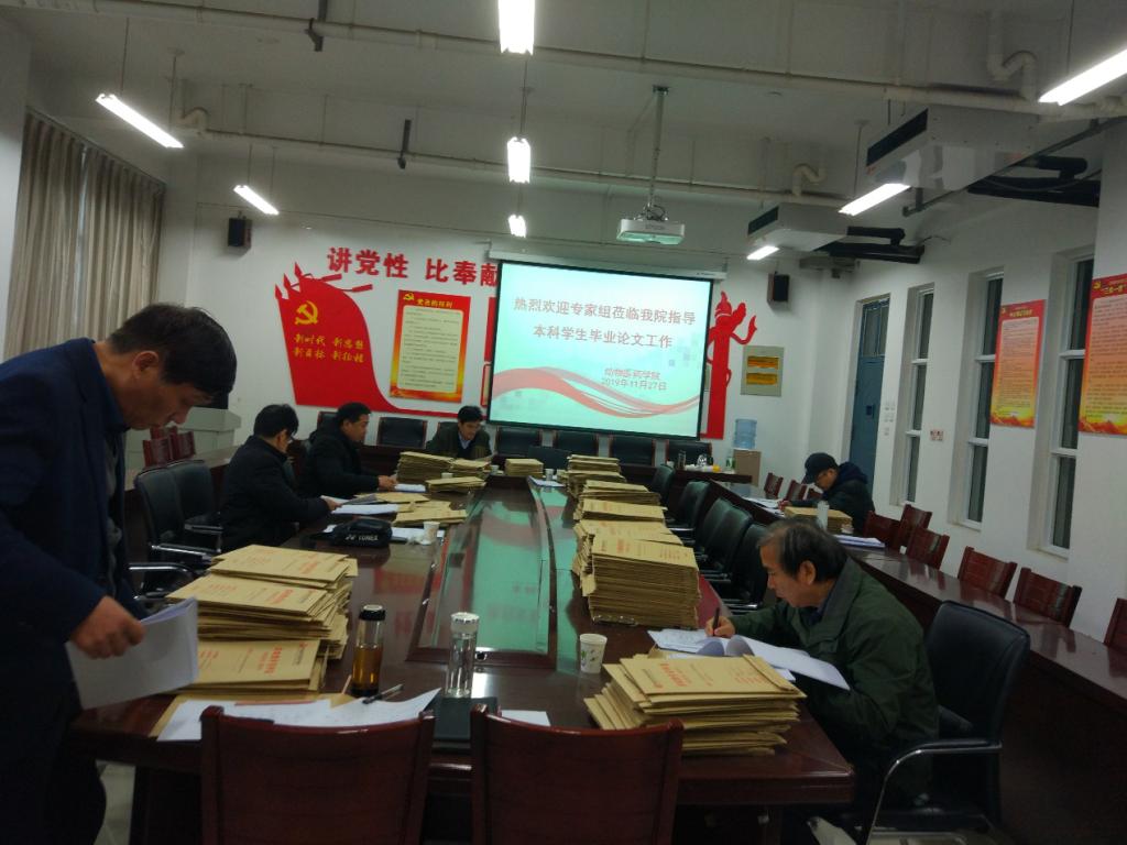 以河南农业大学牧医工程学院副院长李明教授为组长的九位专家,首先听取了副院长李利红对我院本科毕业论文自查工作情况的汇报。随后各检查组成员对照本科毕业论文相关文件填写要求,进行逐项详细检查。检查结束后于下午召开了现场反馈会,各专家对我院本科生毕业论文的整体工作表示了肯定,但也在论文选题、开题报告、论文撰写和论文评阅等环节中存在部分问题,并提出了整改建议。