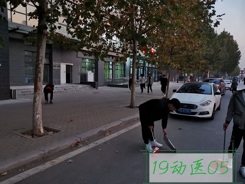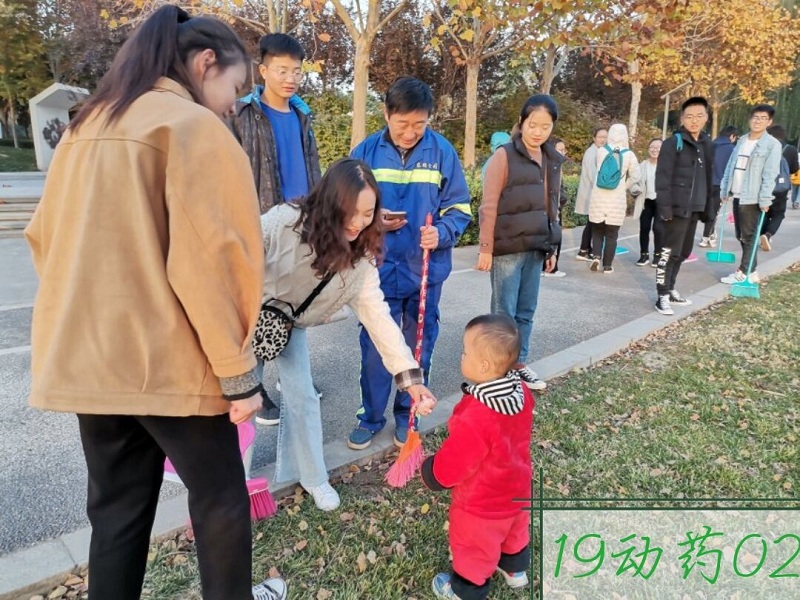 2019年11月22日,19动药02班的同学们还走出校门,对龙子湖周围街道进行了一次集中清扫,还和环卫工人们一起向行人讲述乱丢垃圾的危害和垃圾分类与回收的好处。他们弯腰捡拾垃圾的背影,成为了这个街边一道靓丽的风景。