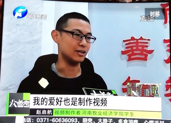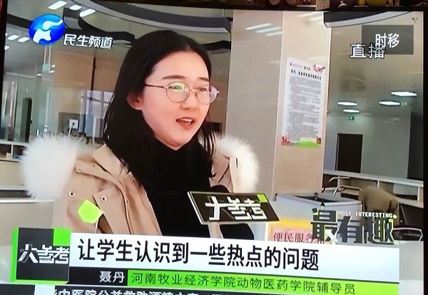 为贯彻落实学校社会主义核心价值观主题教育活动月的要求,鼓励学生积极开展公益活动,提升新时代大学生环保意识。在12月1日郑州市进入垃圾分类之际,我院2019级动物医学专业赵启航同学用混合式战斗的游戏形式拍摄了自称“五毛钱特效”的《环保大战污染》微视频。该视频一经发布便迅速在网络上走红,并受到了多家媒体的转载报道。特别是12月3日,河南广播电视台民生频道对学院辅导员聂丹、学生赵启航等同学进行专访。