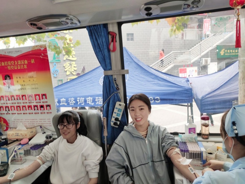 2019年11月23日,19动药01班的40名志愿者在校园二餐南门开展了“无偿献血”志愿活动。冰凉的针头虽然令人退缩,但是想到自己健康的血液能帮助他人,志愿者都踊跃的填表,检验,采血,一上午的时间过去了志愿者们共计无偿捐献了16000毫升的血液,一部分同学还到献血中心捐献了血小板。