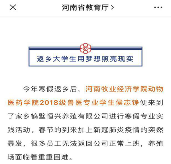 注:河南省教育厅官微相关报道《看看河南这6位大学生干的事儿》https://mp.weixin.qq.com/s/r4uTCL6JHFqzyNauSjdE7w