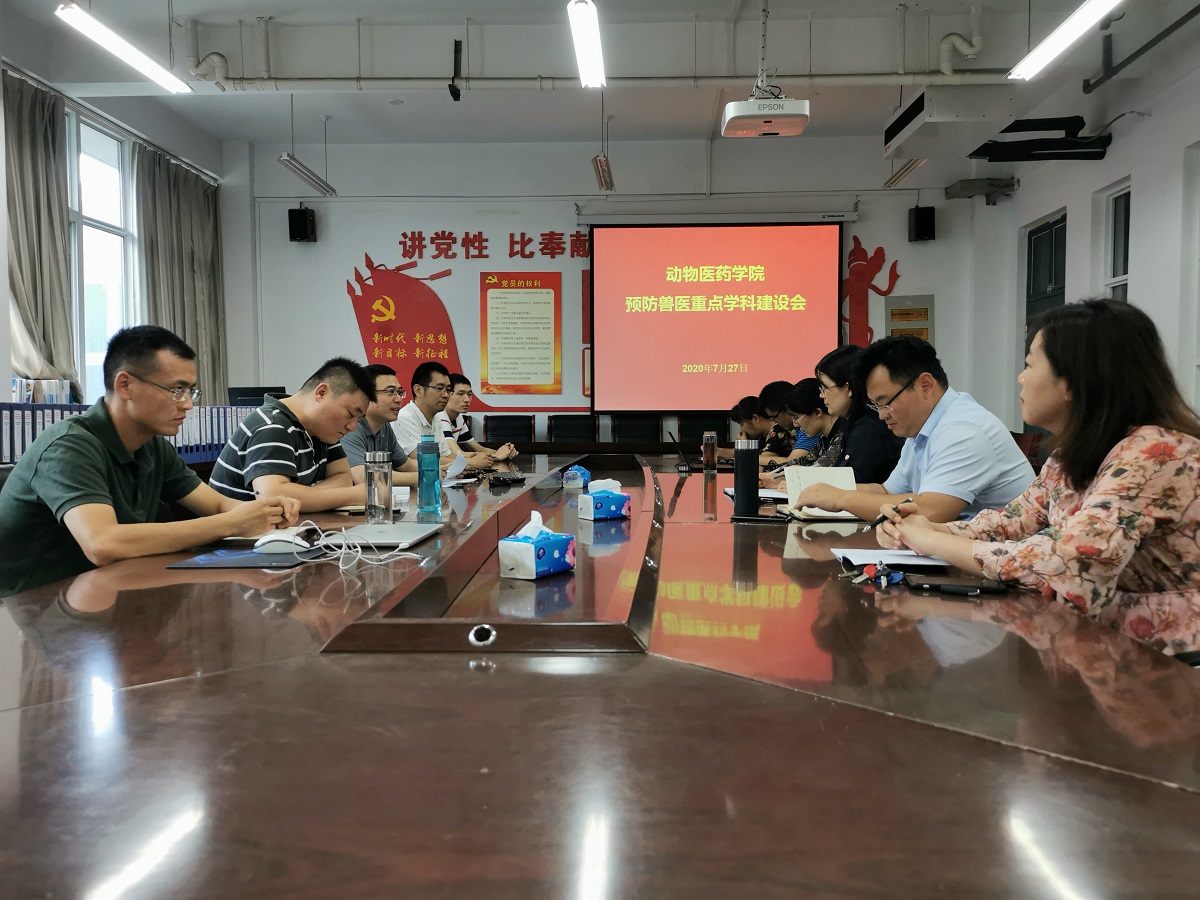 2020年7月27日下午2:30,在生工组团C401室召开了预防兽医重点学科建设工作会,参加会议的有院长宋予震和学科成员。会议由宋予震院长主持。