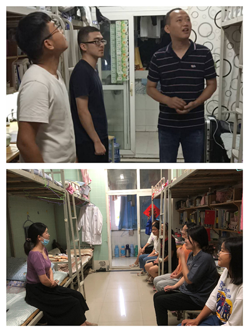 在院党委副书记汪洋的带领下,辅导员们深入学生宿舍,与同学们亲切交谈,询问大家假期学习生活经历、返校过程以及开学后宿舍生活的感受,了解掌握同学们到校后的思想动态,寝室卫生状况,并介绍了学校针对疫情的防控措施,叮嘱大家以饱满的精神状态和严格的自律意识,在做好疫情防控的同时,珍惜时光,潜心学业,全身心投入到新学期的学习、生活之中。同学们对学院为学生安全返校复学所做的各项暖心工作表示衷心感谢的同时,纷纷表示会珍惜来之不易的复学机会,遵守疫情防控期间学校的各项规章制度,努力学习,奋发图强,