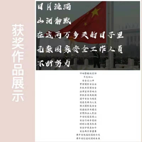 活动通过线上答题和线下艺术作品创作两种方式开展。线下收集学生们的诗歌、书法、微视频等文艺作品,其中多个作品参与学工部评选受到表彰奖励。线上组织学生参与国家安全知识竞赛,普及了国家安全法律法规,提高了学生国家安全意识。线上、线下多种活动形式的举办,充分调动了学生们对国家安全知识学习的积极性,营造出国家安全人人有责的浓厚学习氛围,提升了学生对国家安全意识的思考能力。