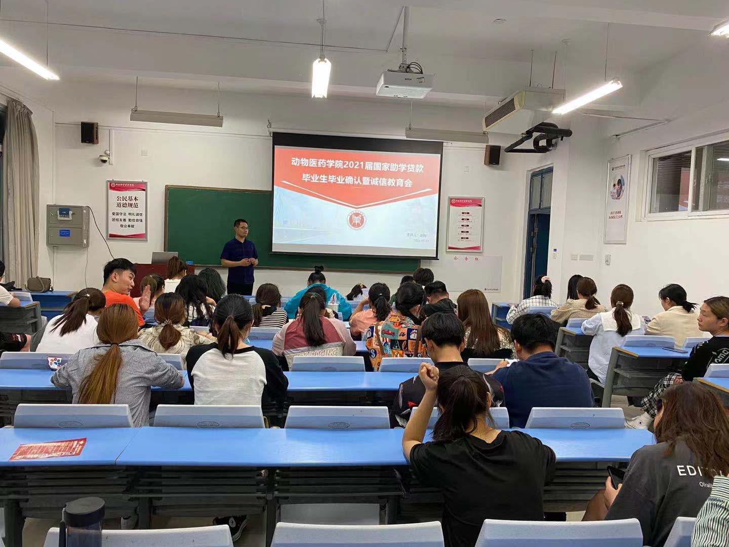 本次会议,赵老师首先向同学们介绍了国家助学贷款政策以及我院助学贷款情况,指出了国家助学贷款是国家对每一位学生的关爱。随后赵老师带领同学们学习了毕业还贷及毕业确认的相关文件,详细阐述了个人信息变更、提前还款、本金偿还、贷款利率、利息偿还、贷款信息查询、贷款展期、违约责任等方面的注意事项,强调了贷款违约的严重后果和处理方式,鼓励同学们按时还贷或提前还贷。最后赵老师对毕业生进行了诚信教育,希望同学们要树立诚信意识,诚信做人,做好个人的社会征信。会后,谷茜茜老师为同学们一一答疑,并再次加强同学们对会议内容的认识。