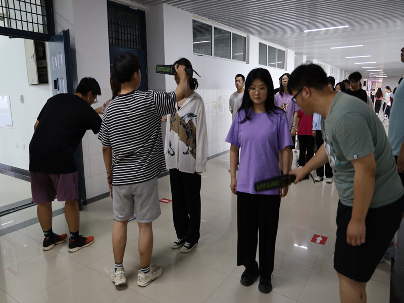 首先,考生们依次排队顺利通过金属探测器检查后,康老师带领考生认真学习《2021年考生考前准备以及教育工作要求》,并重点强调了考场注意事项,并带领考生重温了诚信考试相关法律法规。随后,康老师带领考生们集体朗读了《河南省2021年普通高校专科应届毕业生进入本科阶段学习考生诚信承诺书》。最后,闫老师带领考生学习了《无声入场模拟演练须知》,提醒考生一定要保管好自己的身份证和准考证,做好考前的身心调整,对考试当天不允许携带与考试无关的物品、穿着衣服不能含有金属成分等注意事项进行全面讲解;并要求每一位考生关注我校招生就业处微信公众号,方便考试结束后及时收到志愿填报、录取信息公示、后续手续办理等事项的通知。