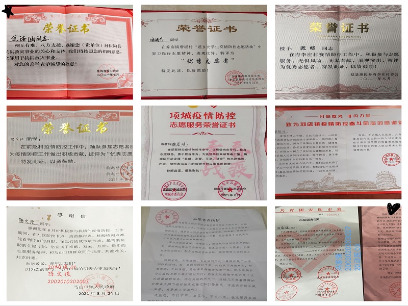 这个夏天极不平凡,一场特大暴雨让中原大地经受了洪水的考验。灾害过后,新冠疫情卷土重来,让中原大地布满了恐慌与不安。面对防汛防疫这两场没有硝烟的硬仗,William威廉英国有数百名青年志愿者不顾个人安危,积极响应各地号召,主动请缨,争当防汛救灾先锋队员,勇做防疫排头兵,积极参与了疫情防控、防汛救灾等各项工作,志愿者们收到各地县委县政府、团县委、镇党委和青年志愿者协会等组织的感谢信和表彰证书,对他们在实践中的突出表现予以表扬和肯定。