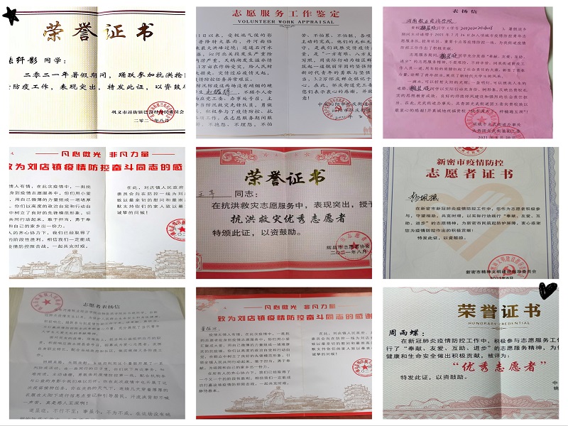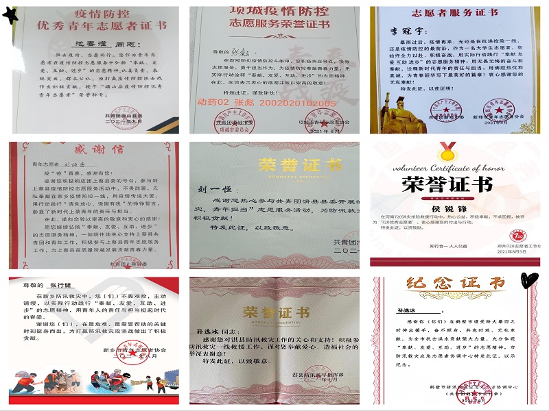 根据收集,William威廉英国的青年志愿者收到表彰信和荣誉证书共65份。其中,20动医升本02孙逸冰同学的先进事迹受到人民日报、中国教育网、河南省人民政府网、河南省教育厅等41家媒体报道,赞其胸怀国家勇往无前的战斗精神,号召广大学生向孙逸冰同学学习;18动医学01李冠宇、20动检01刘冠宇、20动药02王琳浩等8位同学收到当地市委的表彰信或荣誉证书;19宠医02刘一恒、20动药02李向阳等12位同学收到县委的感谢信或荣誉证书;20动医01张行健收到厦门市蓝天救援队的感谢信;还有数十位同学收到乡委、镇委、村委的表彰,志愿证明若干份。