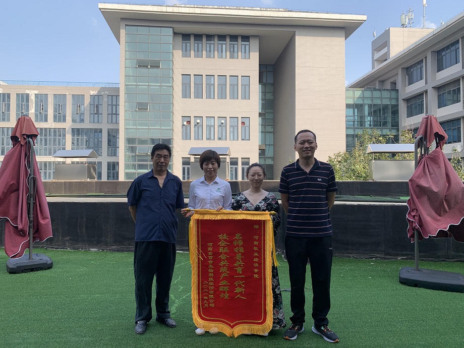9月13日,河南金百合生物科技股份有限公司运营总监郭静来到我院,将一封充满深情的感谢信和一面写有“名师指导共育一代新人校企联合共筑产业辉煌”的锦旗亲自送到了学院领导手中。我院党委副书记汪洋接受了锦旗,并对河南金百合生物科技股份有限公司赠旗表示感谢。我院党委副书记汪洋和实习指导老师王笃学一同与郭总进行了交流。