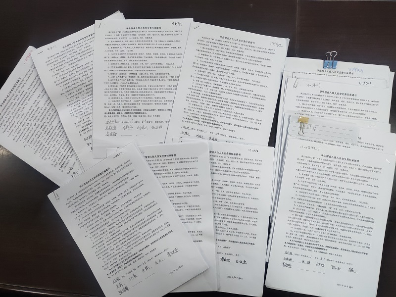 各班助理班主任首先宣读学校《学生宿舍入住人员安全责任承诺书》,并结合宿舍安全方面的实例,详细讲解了相关规定。在宣讲中,助理班主任们反复强调用电安全、财产安全等,呼吁大家高度重视宿舍安全,落实相关规定。随后组织班级同学,在《承诺书》上签上自己的名字。签订仪式结束后,助理班主任们组织同学观看学习《宿舍内务规范标准化视频教程》视频,帮助同学们梳理良好的卫生意识,共同创建整洁、美观、舒适、和谐的宿舍环境。