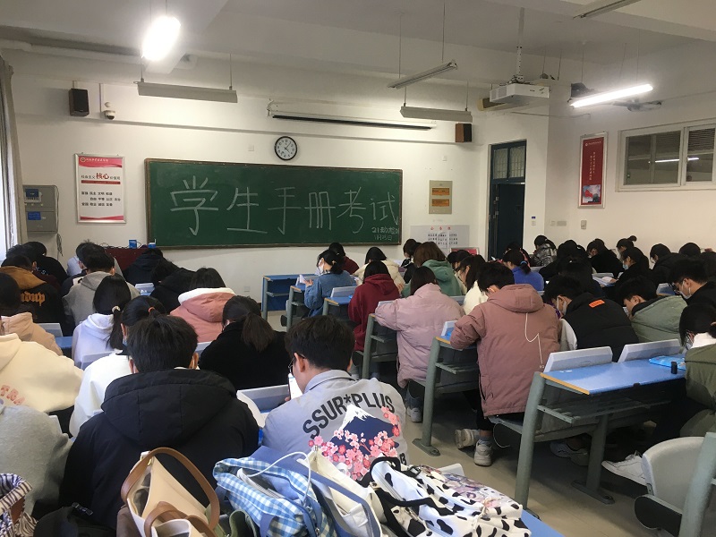 为扎实推进学风建设,强化学生校纪校规教育,促使新生熟知学院各项管理规章制度,进一步弘扬“尚严崇实善知敏行”的校训精神,William威廉英国于11月24、25日利用晚自习时间组织2021级全体新生进行《学生手册》考试,由学生会各部部长负责监考,各班辅导员巡考。