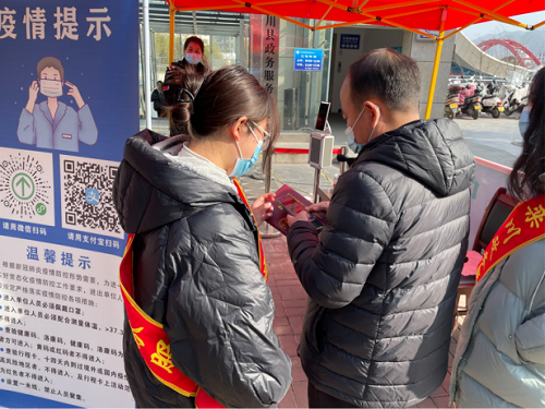 河南省洛阳市栾川县政务服务中心,我院21动医03的王艺格,按照单位要求,和另外几名返乡大学生,正在对业务人员的行程码、健康码查验,外地返乡人员的信息登记,以及排队群众的安全距离劝导。她表示:“志愿服务期间,面对各种各样的群众,我需要有足够的耐心,遇到各色各样的情况,我需要有灵敏的反应。在这里工作的几天,当我教会许许多多的老人找行程码,健康码后,我感觉自己很有成就感。在搀扶完步履蹒跚的老人下楼后,老人轻缓缓的一句:“谢谢你啊闺女。”这句话的说出,让我明白了志愿服务的意义:不仅是在服务社会,也在一次次付出中,收获着属于我的温暖。我的岗位也许普通,肩上的志愿服务标志也许很不起眼。但我也会发挥我微小的力量,服务好社会。”