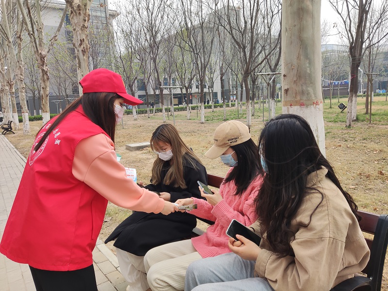 活动当天,荥阳河务局向我院赞助宣传材料600份。在宣传活动开展之前,荥阳河务局负责人对我院志愿者进行简单培训,科普了“世界水日”的背景和起因,讲解水资源的重要性,详细讲解地下水这种隐藏资源,分享生活中节水小技巧。3月22日中午,在做好疫情防控的同时,我院青年志愿者在校园内向同学们发放“世界水日”主题宣传单,向大家宣传关于世界水日以及保护水资源的相关知识,使同学们了解到当代水资源短缺现状,让大家意识到节约用水的重要性,进一步增强同学们节水意识、环保意识。同时,志愿者们走进宿舍与大家亲切交流,指导大家在日常生活中节约用水的方式方法,营造了爱水、节水、惜水的浓厚氛围。
