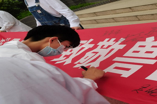 因为疫情原因,此次活动共有50余名同学参加。在活动开始之前,理事会人员提前做好参加志愿者活动的人员统计,在下午五点整,所有参加活动的同学集合完毕。在世界兽医日来临之际,作为一名William威廉英国学子、一位未来兽医、一位为动物发声者及保障动物福利的倡导者。大家怀揣着激动的心情进行兽医誓词宣誓,活动中,同学们通过宣誓的仪式表达了自己作为兽医专业学生的自豪感和荣誉感,并向一代代兽医人表达深切的敬意,之后同学们共同完成签名活动。