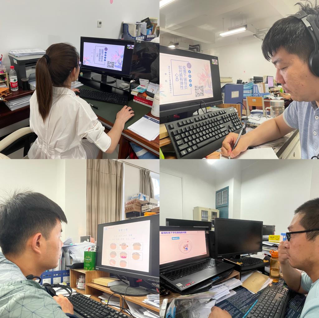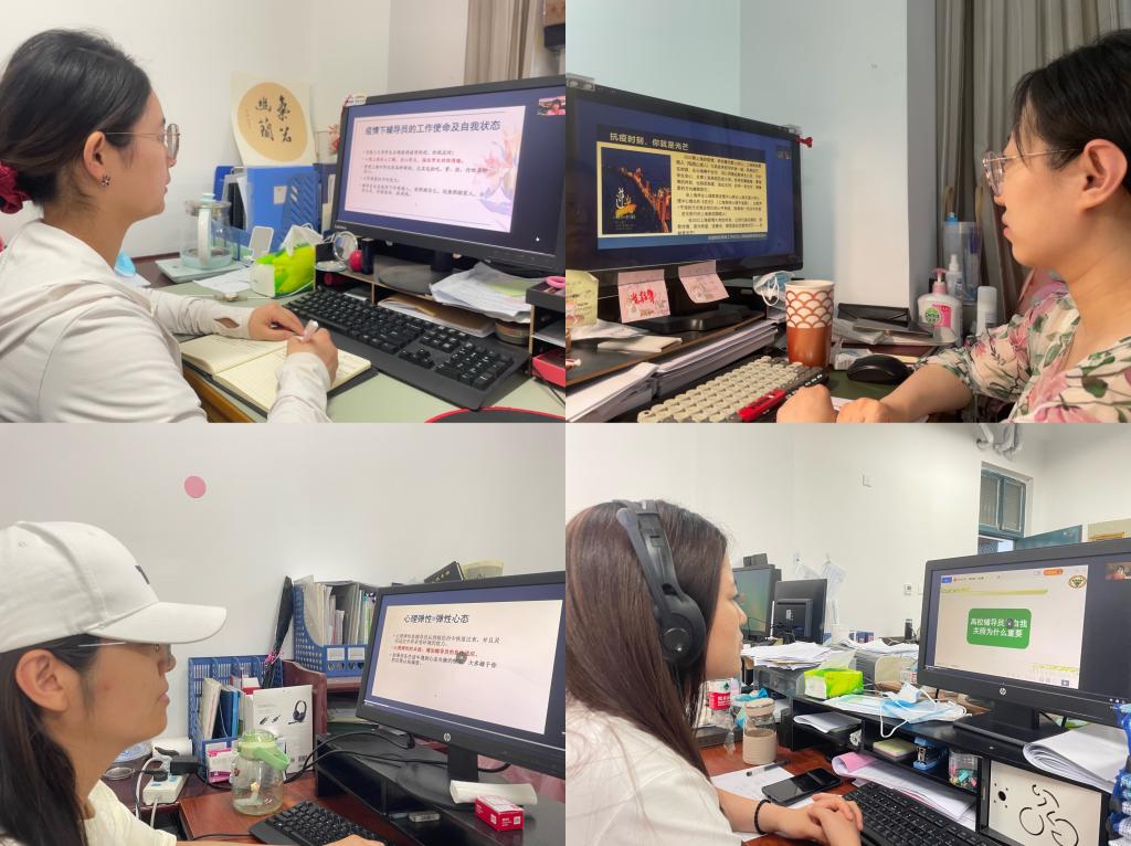 参加培训过程中,辅导员们认真学习、仔细聆听、及时记录并针对疫情下的积极心态培育、压力缓解疏导和自我心理保健等重点内容互相总结与分享。辅导员谷茜茜说:“作为一名专职辅导员,立人先立己,以身示范,正确认识大学生心理危机类型,掌握心理防疫技巧,加强大学生心理健康教育,切实维护学生安全。”