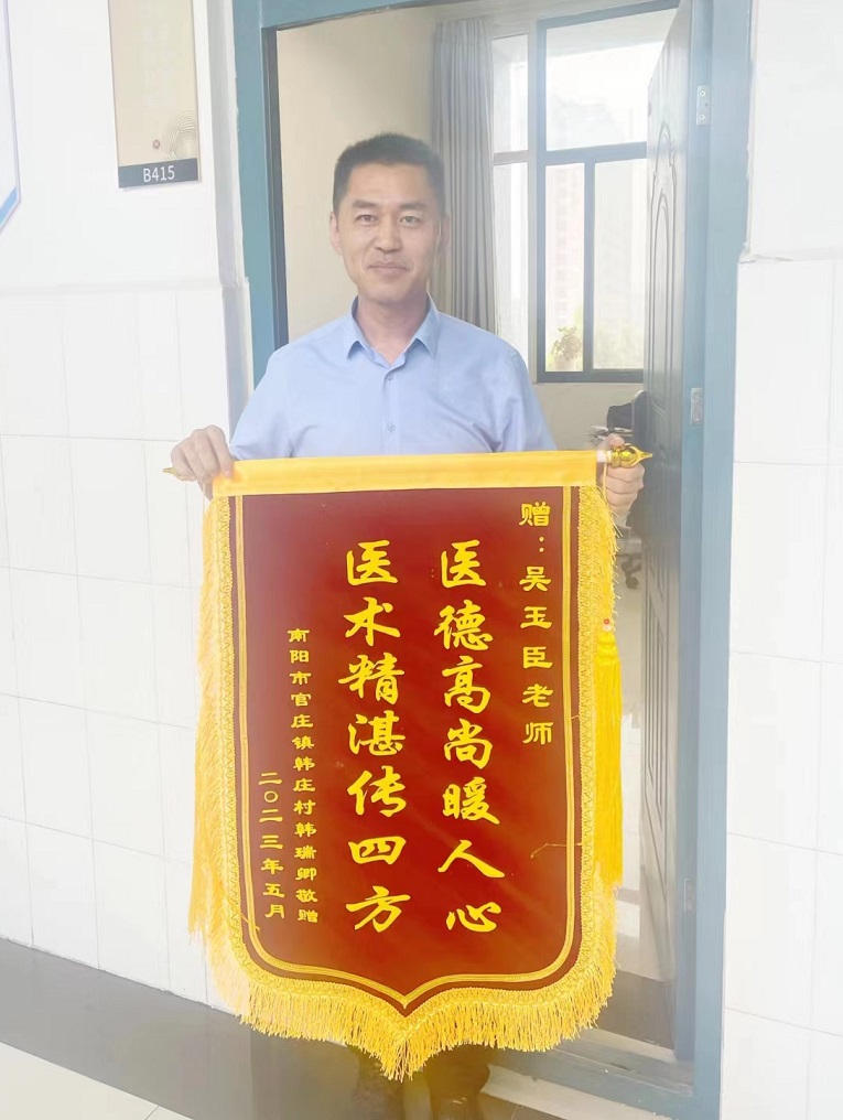 近日,我院副院长吴玉臣博士收到了一面内容为:“医德高尚暖人心,医术精湛传四方”的锦旗。