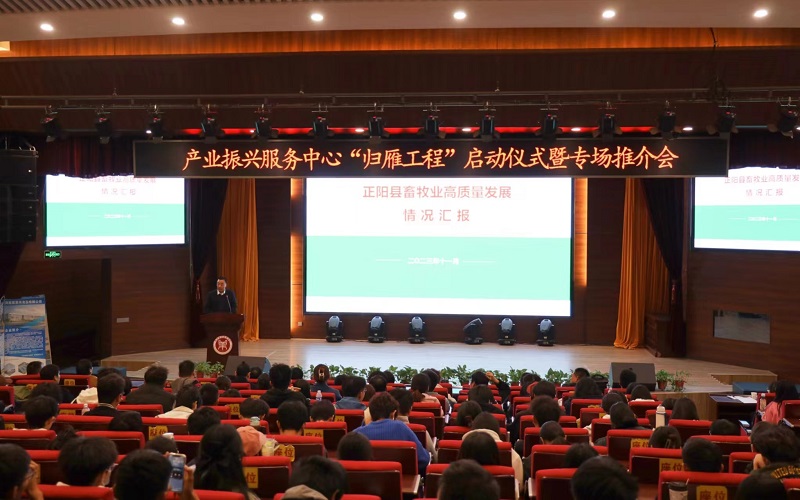 接下来,正阳县畜牧中心主任、产业振兴服务中心副主任张文霞作了“正阳县畜牧业高质量发展”情况汇报,介绍了正阳县畜牧业产业发展情况和前景,正阳县君乐宝、正阳牧歌、雅拉德荣、淘儿宁、正鲜食品、宸晨肉食、正阳牧原、淮汝科技、际腾生物、荣盛科技、八个人电子商务11家企业代表分别推介了企业发展情况和招才引智需求,热烈欢迎我院学子到正阳就业、创业、兴业。