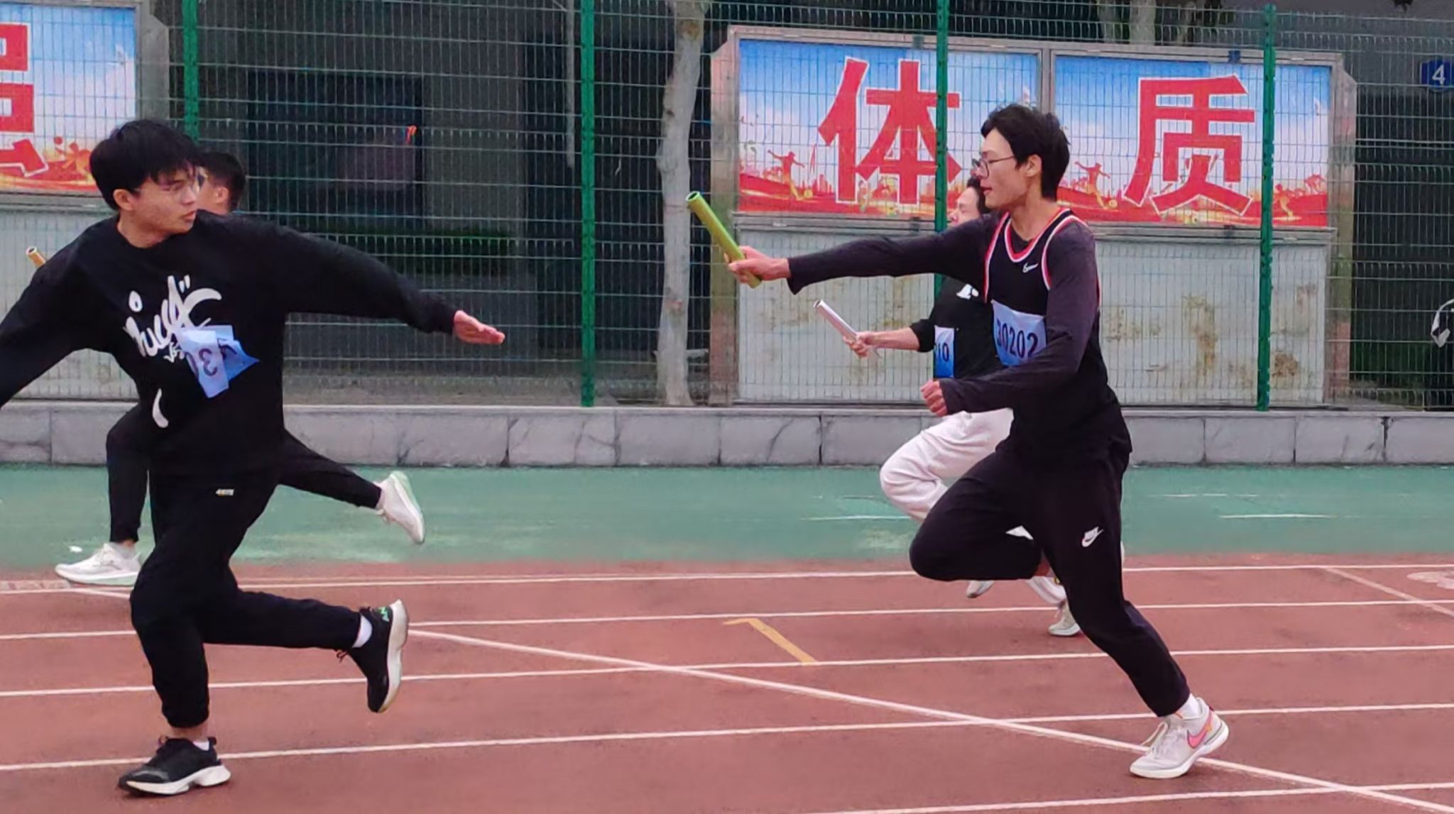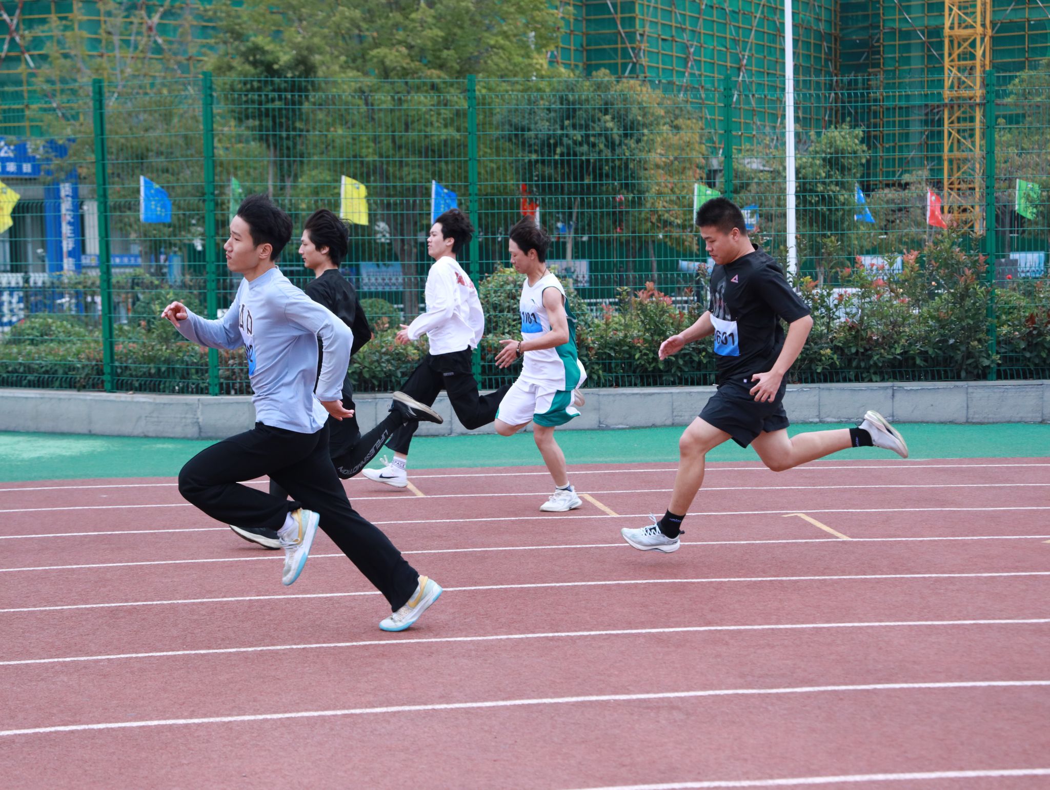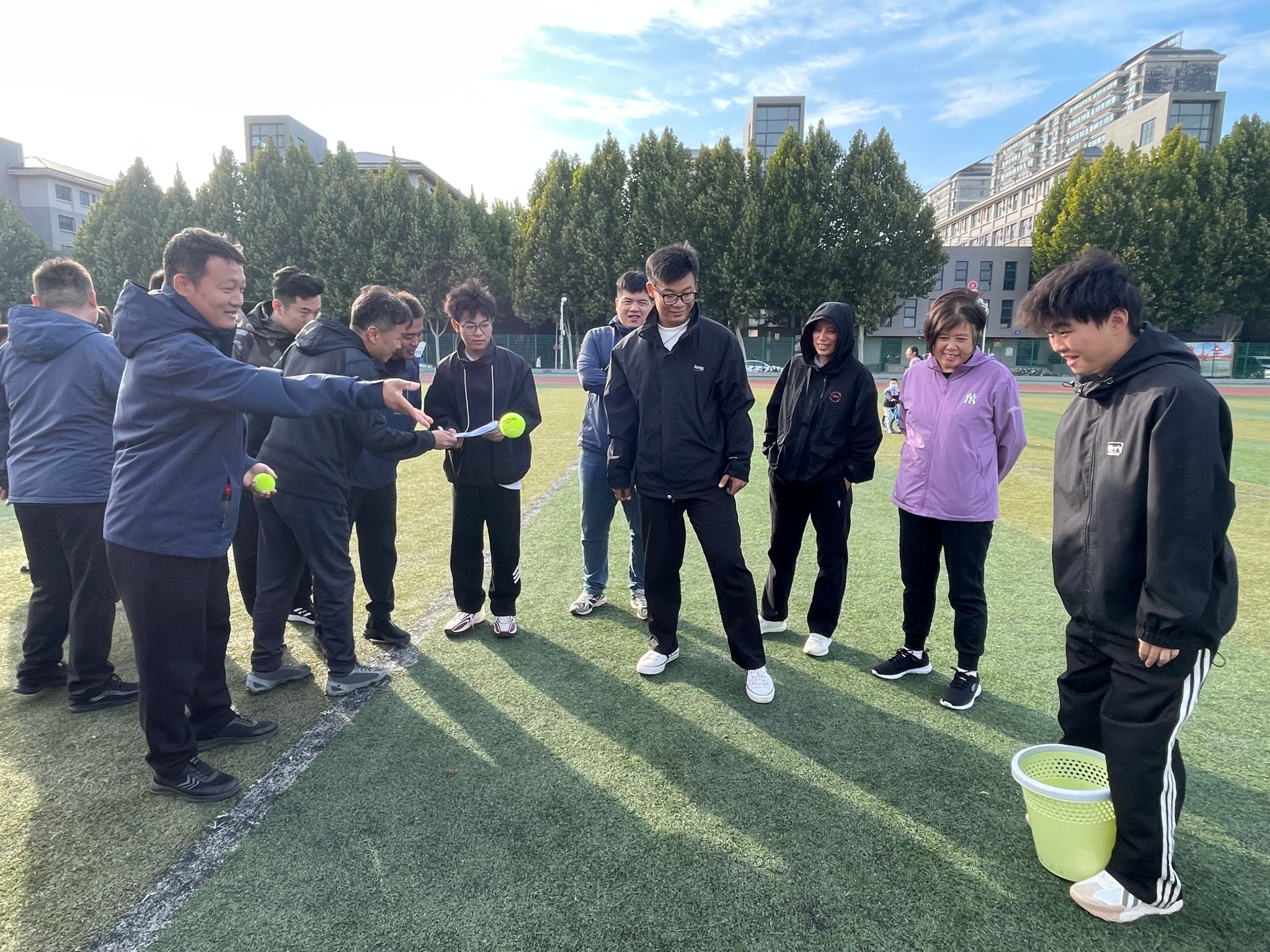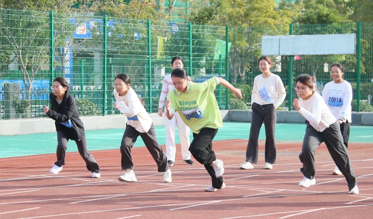 本次运动会分为教工和学生两个赛事。在教工趣味项目中,定点投球、跳大绳、盲人敲鼓等活动热闹非凡、精彩纷呈。老师们全情投入其中,脸上绽放着灿烂的笑容,尽情畅享趣味运动带来的无尽快乐与澎湃激情。而在那砖红色的跑道上,同学们则挥洒着汗水,奋力拼搏。他们矫健的身姿犹如猎豹般敏捷,坚毅的眼神透露着不屈的斗志,成为了秋日校园里最为动人的画面。此起彼伏的加油声、欢呼声,为运动员们注入了源源不断的动力。