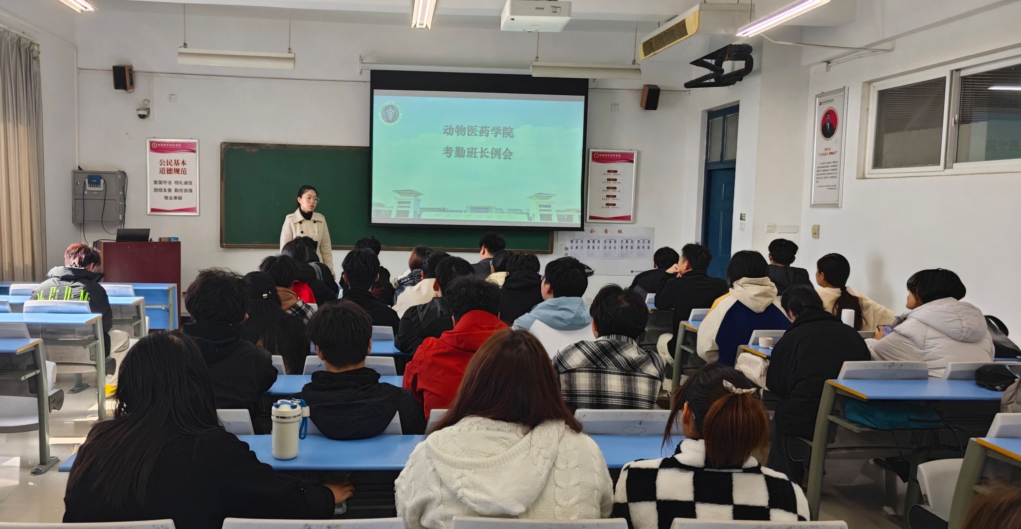 会上,谷老师强调了考勤工作在学风建设中的重要作用。她指出,考勤不仅是学生日常学习管理的基础环节,更是衡量学院学风状况的重要指标。因此,全体考勤班长要深刻认识到自身工作的重要性,增强主体意识,以身作则,积极发挥模范带头作用。