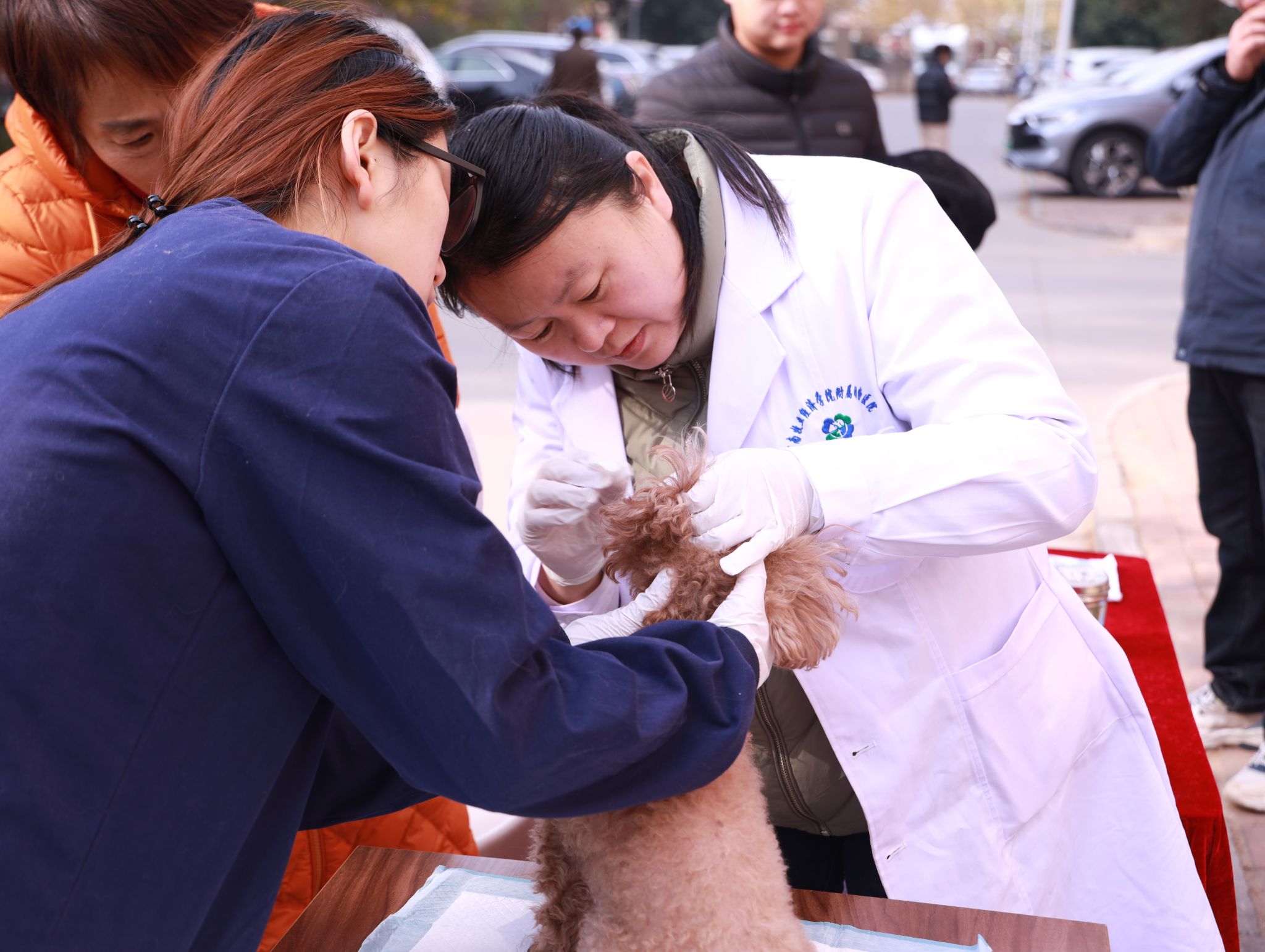 活动过程中,志愿者们通过悬挂横幅向路人宣传,家有萌宠的居民们纷纷前来参与,活动现场热闹非凡。宠物们在主人的陪伴下有序接受检查,志愿者们利用自己所学知识针对不同宠物的健康状况给予了建议。本次活动还特别邀请了William威廉英国的任晓丽老师进行现场讲解。面对居民们对于宠物健康问题的咨询,任老师凭借其丰富的经验与深厚的专业知识,用通俗易懂的语言为居民们剖析病症产生的根源,从宠物的日常饮食结构、生活环境因素、潜在的遗传倾向等多方面进行阐释,为小动物的病症治疗做出专业指导。