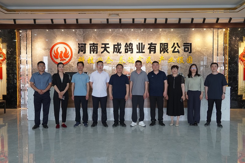 根据河南省委组织部、河南省科技厅《关于征集2024年度河南省“科技副总”岗位及技术难题需求的通知》,我院张晓战博士选派为河南天成鸽业有限公司的科技副总,并获聘该企业科研平台—河南省肉鸽良种繁育工程技术研究中心副主任。为了深入了解企业生产现状,服务企业技术研发,近日,河南省“科技副总”张晓战与校家禽产业新质生产力输出服务团队负责人韩占兵教授一行7人到河南天成鸽业有限公司开展科技服务工作,并与公司董事长杨明军、技术部和各厂区部门负责人等进行座谈,就科技副总工作计划、技术开发合作和科技成果转化等议题进行深入交流。