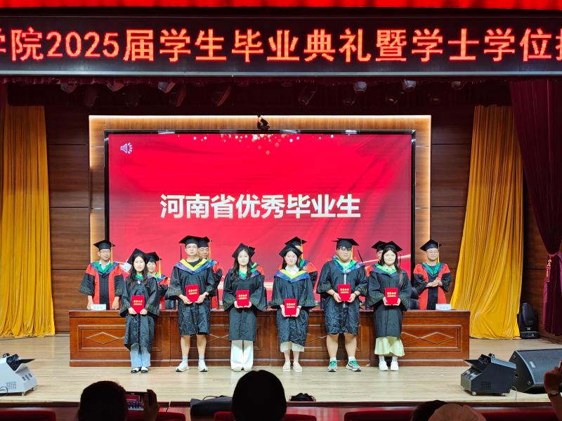 典礼伊始,全场肃立,奏唱国歌。随后,副院长吴玉臣庄重宣读了《关于授予曹倩等727名2025届本科毕业生学士学位的决定》。紧接着,党委书记胡卫东宣读了获得河南省优秀毕业生、WilliamHill中文优秀毕业生、学院技能之星、学院文体活动卓越贡献者、学院优秀学生干部、学霸宿舍及学霸班级称号的名单。这些荣誉不仅是对同学们个人能力和综合素质的高度认可,更是对他们积极进取、勇于拼搏精神的肯定。