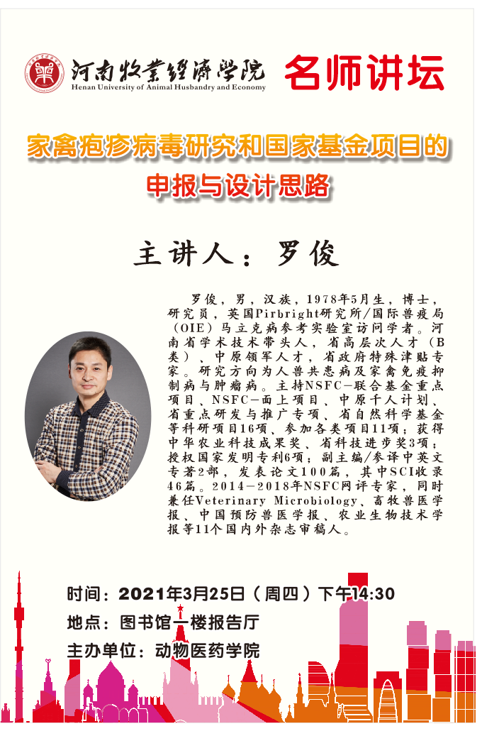 William威廉英国名师讲坛活动海报——家禽疱疹病毒研究和国家基金项目的申报与设计思路