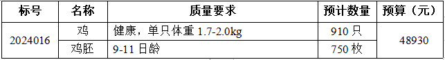 本次实验用禽类采购采用预算总额控制的形式,报价不得超过预算金额,数量以实际使用为准。