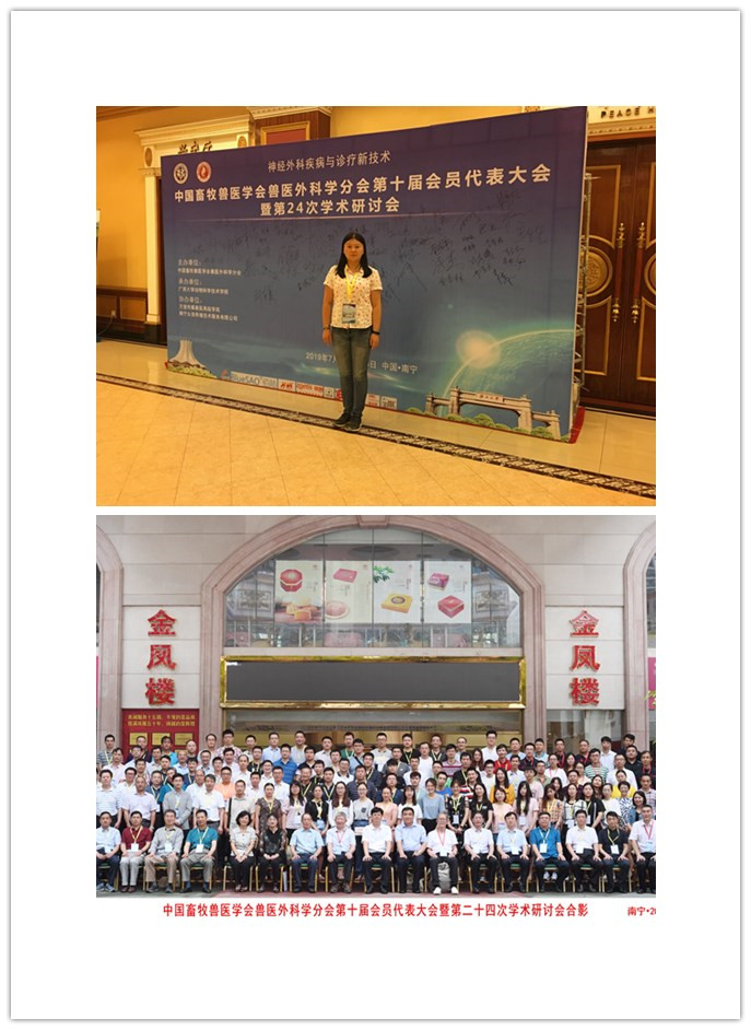 2019年7月14-16日中国畜牧兽医学会兽医外科学分会第十届会员代表大会暨第24次研讨会在广西南宁召开,此次会议由广西大学动物科技技术学院承办,来自全国农林高校二百多位教师代表参加了此次会议,动物医学院教师代表任晓丽博士参加了此次会议。