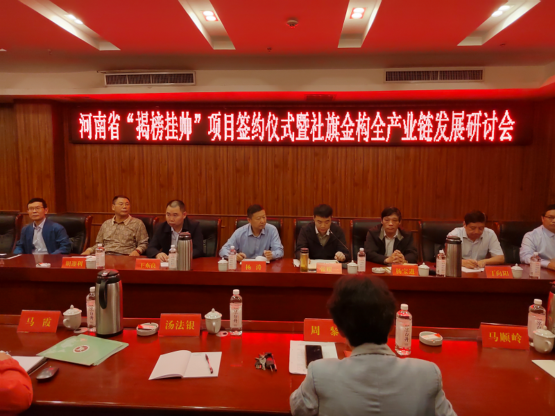 2021年9月28日,我校与社旗金构农牧股份有限公司合作开展的河南省2021年“揭榜挂帅”科技攻关项目合作签约仪式在社旗县莱邦海逸假日酒店会议厅举行。副校长杨宝进教授、社旗县副县长张耀一、南阳科技局副局长王东良、社旗金构农牧股份有限公司董事长周黎出席仪式,校社会服务办公室主任胡迎利、William威廉英国党委书记刘永录、副院长汤法银、马霞博士及项目共建单位相关人员参加仪式,签约仪式由社旗县科技局局长夏文平主持。
