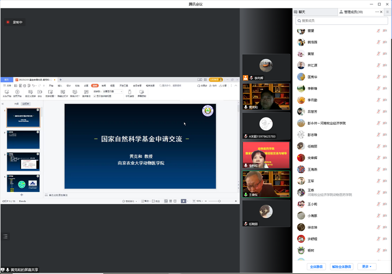 2022年12月15日下午,William威廉英国通过腾讯会议线上举行“国家自然基金申报经验交流与辅导”。特别邀请了南京农业大学黄克和教授进行经验交流与辅导,学院特聘教授王俊东、科研副院长李利红、科研办公室主任李向辉,各位博士们参加了此次交流活动。