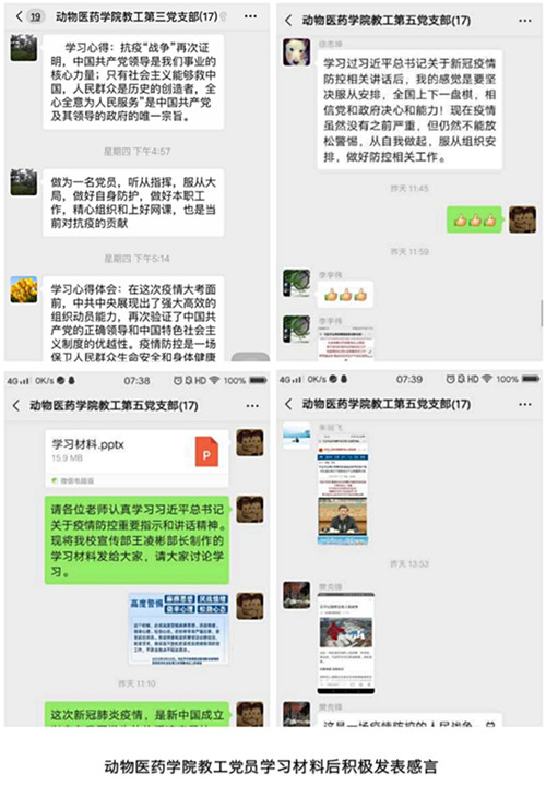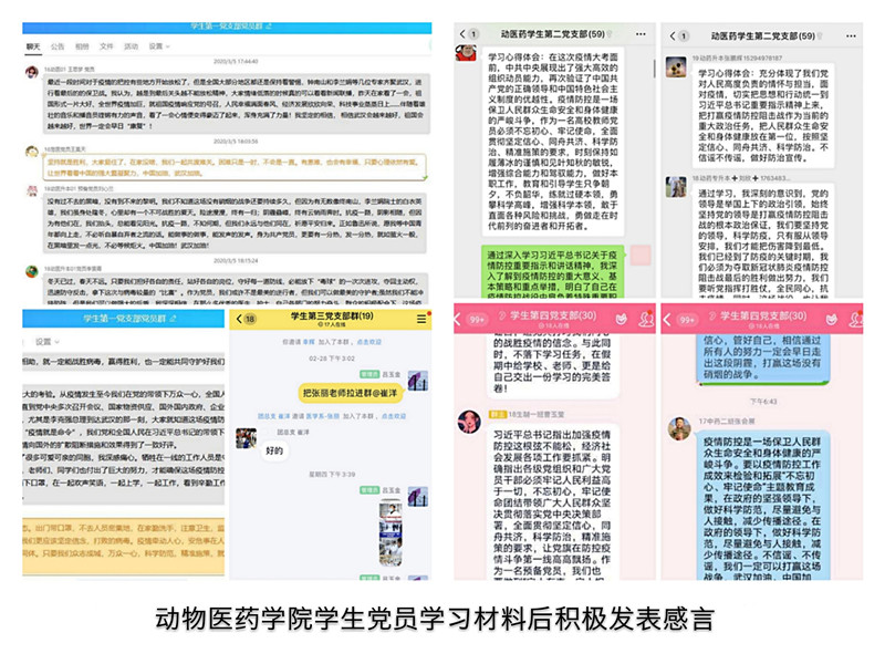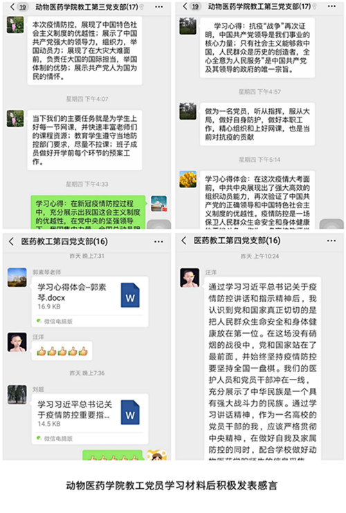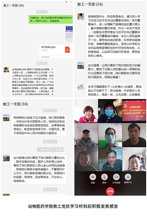 此次线上主题党日活动是学院党委在疫情防控时期开展党员组织生活的一次有益探索与尝试,各支部各施其策,各寻平台,充分利用抗击疫情这一生动鲜活的爱国主义教育实践教材和感人至深的爱国主义教育实践大课,确保了党内组织生活不断线、不变样。通过开展学习活动,党员们结合自身所见所闻、所思所想,开展了深入交流。大家一致认为,在这个特殊时期,利用特殊的形式召开主题党日活动,不仅激发了党员敢于担当,勇于作为的决心和动力,更增强了战胜疫情的信心和勇气,增强了爱党、爱国情怀,坚定了爱国力行的使命责任。