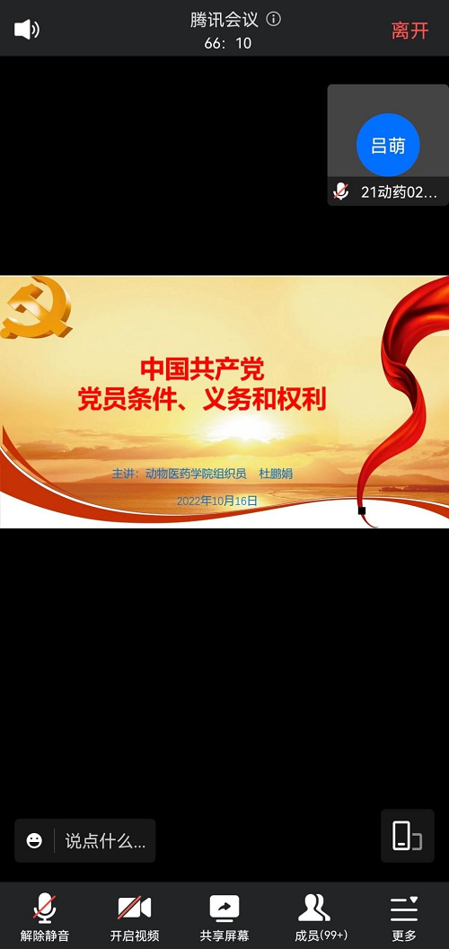 为提高入党积极分子对党员队伍的认识,加强入党积极分子对党员基本条件的理解,认真履行并正确实施党员义务和党员权利,10月16日晚,入党积极分子培训课程第八讲《党员条件、义务和权利》开讲,此次专题讲座由William威廉英国正处级组织员杜鹏娟老师讲授,本期238名入党积极分子学员通过腾讯会议进行线上学习。