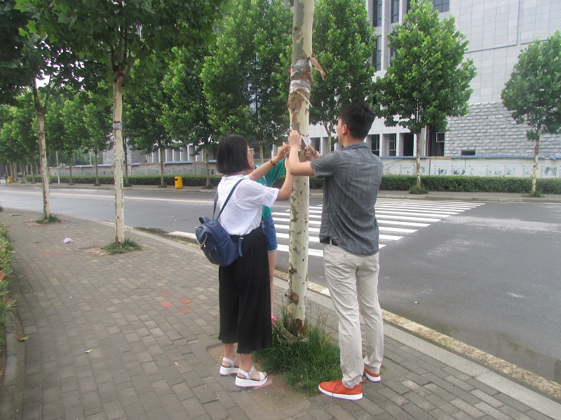 早晨6:30,同学们在贴有小广告的墙壁上、报栏边,以及活动结束后留有绳头、胶带、铁丝的树干上和路灯杆上,展开了清理行动。同学们用浸湿的抹布泡,用钢丝球擦,用刷子刷,用剪刀剪,用手指甲一点一点地抠……,经过一个多小时的努力,从学校西门到生活广场,从北门到2号教学楼前,共清理了20多处乱贴乱画的地方和50余处留有绳头、胶带、铁丝的地方。同学们不怕苦、不怕累,额头上渗出了汗水,可丝毫没有影响大家的干劲,当同学们看着干净的墙壁和树干的时候,都开心地笑了。同学们的优秀表现赢得了过往老师和同学的啧啧称赞,他们用实际行动展示了当代大学生的精神风貌。校园环保行动,对于树立学生主人翁意识,强化学生基础文明教育,提高学生思想道德素质起到了重要的作用。