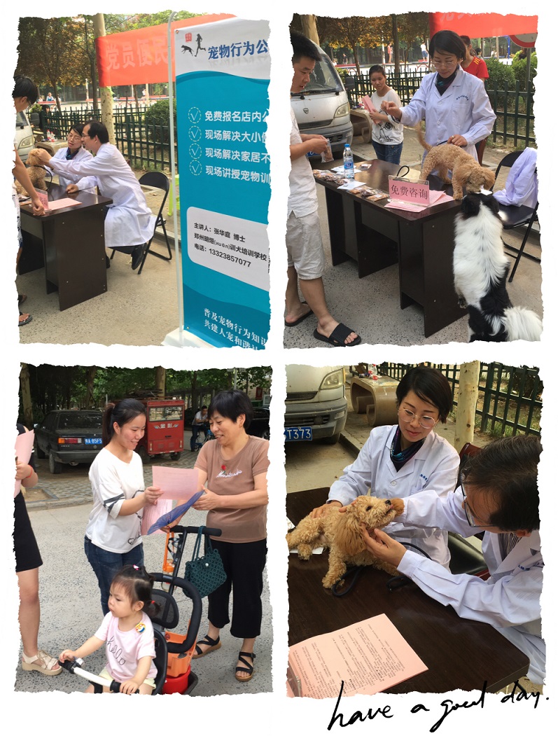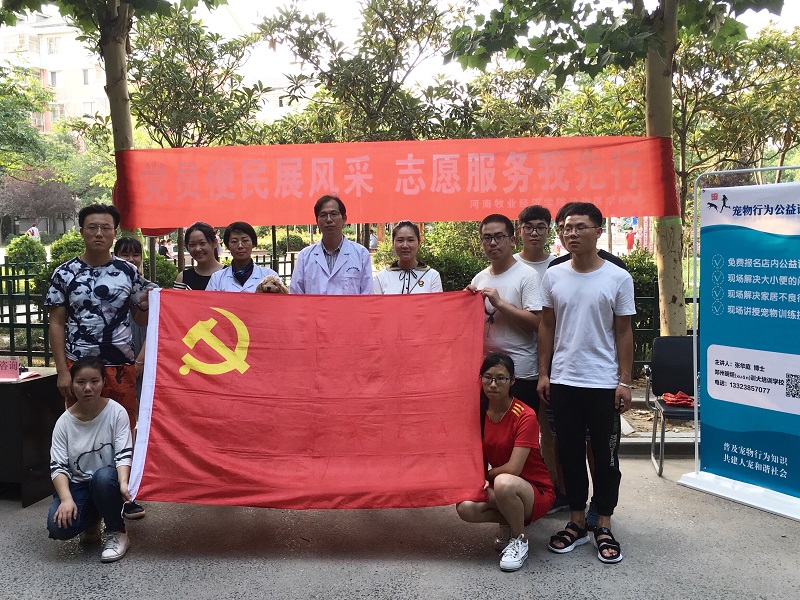 为弘扬志愿服务精神,秉承“全心全意为人民服务”的宗旨,结合动物医学院专业特色,我院于2018年6月21日,由党员教师代表米俊宪、张华、樊明明三位老师和部分学生党员代表们在陈三桥社区开展“宠物问诊咨询义务服务活动”,为社区居民提供咨询服务、传播诊疗常识知识、倡导文明养犬。
