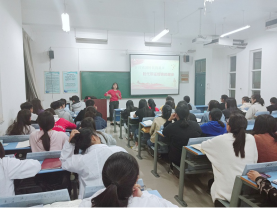 为响应我校党的创新理论学习号召,加强我院学生思想政治理论建设,2018年10月12日晚7:00,我院组织学生党员和积极分子在生工组团A407,开展了“岁月铭刻时代的艰辛,时代印证铿锵的脚步”的党的创新理论主题宣讲活动。本次活动由院团总支副书记韩明霞带领大家共同学习。