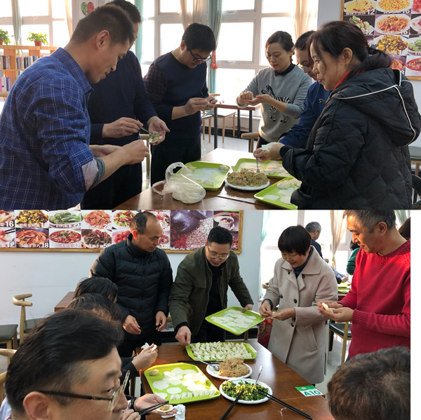 活动现场,大家积极参与到包饺子的各个环节。老师们围坐在一起,和面的和面,擀皮的擀皮,包饺子的包饺子,包出的饺子体现了各个地方的不同风俗和饺子样式,一排排独具个性的饺子很快就摆满了一个个盘子。大家围绕学习、生活、工作等话题,不时交谈着。老师们欢声笑语,不知疲惫,忙前忙后,现场气氛十分热闹融洽,当热腾腾的饺子出锅,吃到自己亲手包的饺子时,大家脸上无不洋溢着幸福的笑容。