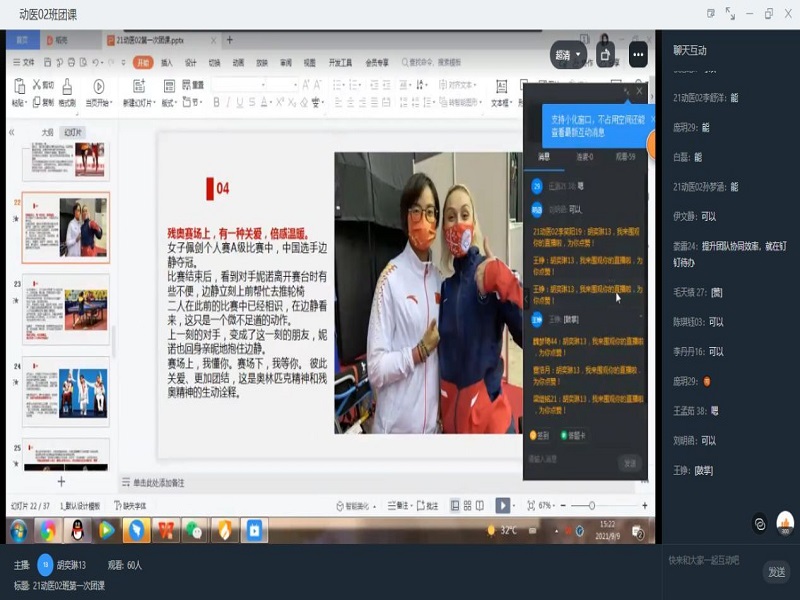9月9日,我院组织20、21级各班开展线上团课学习活动,以“停课不停学,青春战疫情”为主题,旨在培养同学们的家国情怀,让同学们鼓起勇气敢做时代的弄潮儿,争做合格的社会主义接班人。