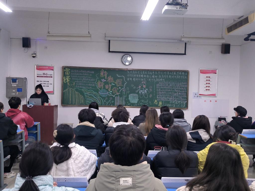 团课伊始,主持人向同学们讲解雷锋同志的生平事迹,以及社会各界人士对雷锋同志的评价,帮助同学们更深入地了解雷锋精神的时代内涵。接着,同学们纷纷分享发生在自己身边的“雷锋小故事”,表示要将雷锋精神内化于心,外化于行。随后,主持人通过播放雷锋纪录片,引导新时代青年学生在雷锋精神的指引下践行“奉献、友爱、互助、进步”的志愿者精神。最后,主持人呼吁同学们积极参加志愿活动,感受“赠人玫瑰,手有余香”的快乐。