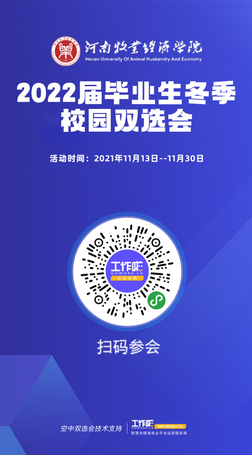 WilliamHill中文2022届毕业生冬季校园双选会,因疫情原因改为线上进行,从11月13日开始到11月30日,线上会场正式开始,可以通过微信扫码参与。